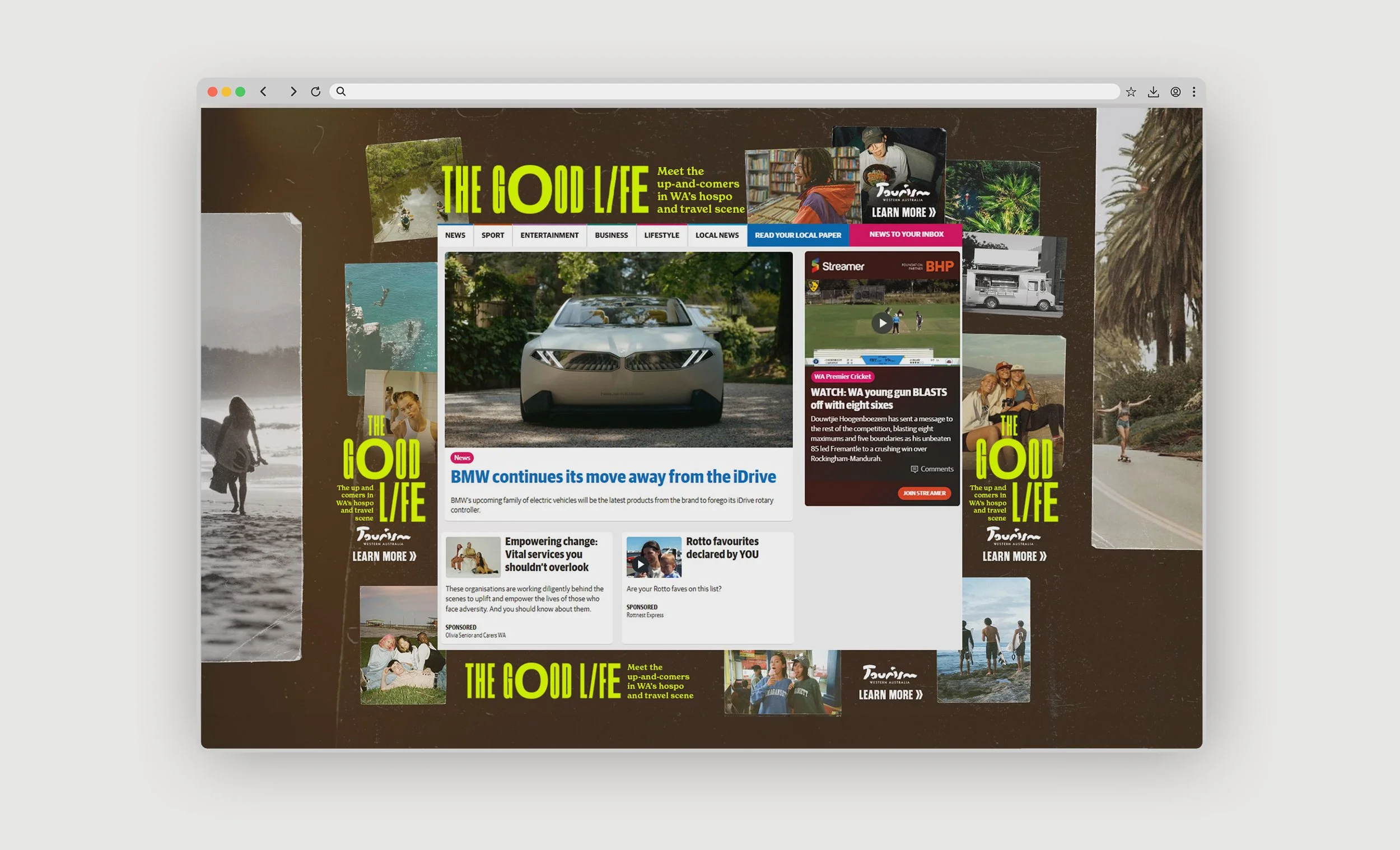I produced visual mock-ups for a Tourism WA pitch aimed at boosting hospitality employment in regional areas. Targeting travellers in their early to mid-twenties, the concept framed regional hospitality as a lifestyle full of memorable experiences. The pitch included multiple executions across print, digital, and social, intended to feature striking graphics with a warm, organic tone tailored to the audience.