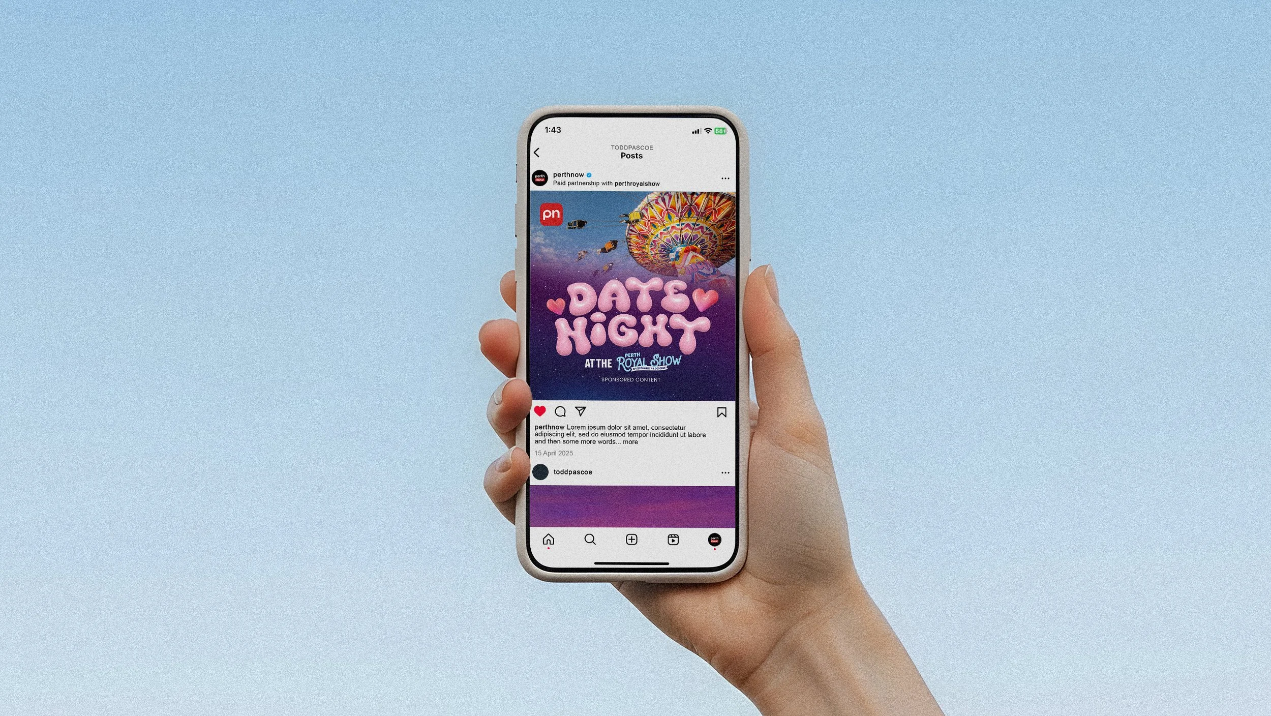 The Perth Royal Show, held at Claremont Showgrounds, celebrates city and country life with livestock competitions, woodchopping, rides, entertainment and more. For the 2025 promotion, I created three swipe-able social carousels highlighting key events, building on the show’s existing branding, whilst keeping the editorial voice of PerthNow. The designs were well received by both the client and audience, who hopefully enjoyed the show!